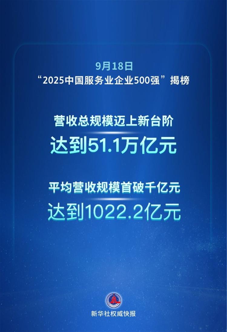 9月18日,中国企业联合会和中国企业家协会在重庆中发布了“ 2025年中国500家服务企业”。 2024年,上市业务的营业收入总数达到了一个新的水平,达到51.1万元人民币,平均营业收入量表首次超过1000亿元人民币,达到1002.2亿元人民币。最新列表表明,服务行业前500家服务公司的收入增长率得到了加速,收入水平的增长迅速,并且运营效率提高了结构。每个自国会营业收入和人均净利润分别上升到328.1亿元和215,000元人民币,都达到了历史上最好的。新兴服务表现良好,现代新兴服务行业如ininternet和信息技术服务,财务,物流和供应链服务,商业服务加速了他们的增长,并列出了184个列出的Comp Comp雄王。记者:天·金文(Tian Jinwen)和王十一海报的制作:蒂安·金文(Tian Jinwen)是新华社和新华社重庆分公司的成员