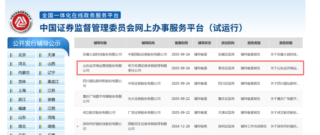 根据中国证券监管委员会的网站,山东Yuanyang Shipping Group Co,Ltd。(从这里开始,“ Shandong Yanyang”)于9月24日在Qingdao Securities监管局清单上列出了指南,并计划签发首次公开报价和清单的股份。经纪指南是洪旺族证券的承销和赞助公司有限公司(从那里称为“ Shenwan Hongyuan Securities”)。公共信息显示,山东大洋洲于2020年3月27日成立,注册资本为4.45亿元。它位于青岛市的什贝伊区。它是维修和集成Shandong Port Group Co Business ltd.的产物(从那里称为“ Shandong Port Group”)。它主要从事运输和代理容器,填充石油和运输,干式货物运输,盒装运输和其他企业。公司的股东控制是SHAndong Port Group,拥有29.47%的股份。教学注册报告表明,山东遍布山东在9月23日与Shenwan Hongyuan证券签署了一项教学协议。根据《指南指南》,从2025年9月到2025年10月,专注于合规性和培训,并改善公司的内部控制系统;从2025年11月到2026年3月,将对发现的问题进行更正;从4月至2026年5月,完成接收和提交材料接受教学接受的接收。 According to previously disclosed financial data, Shandong Oceanwide operating revenue from 2021 to 2023 and the first quarter of 2024 was RMB 49 million, RMB 195 million, RMB 245 million, and RMB 626 million, aThat is to mention, and its net profit is RMB 1.3999 million, RMB 99.6356 million, RMB 109.4255 million and RMB 34.8 respectively. 《先驱先驱报》记者发现,山东大地列表计划长期以来一直是我n介绍。 Shandong Yanyang是一种专门用于山东港口集团种植的生物。 2023年11月,公开竞标IPO金融审计机构。在2023年6月举行的山东港口集团的国会党上,山东大国董事长Zhao Bo还表示,有必要确保很快列出了山东港口部门的业务。目前,山东港口集团有三家上市公司:Qingdao Port(601298.SH,06198.HK),Rizhao Port(600017.sh)和Rizhao Port Jurong(06117.HK)。 Shandong Oceanwide这次推出了IPO。如果它成功地打开了资本市场的大门,并成为山东港口集团下的第四名平台,那就是卡帕纳(Kapana)。 (大众新闻·《经济先驱报》记者杨贾克)